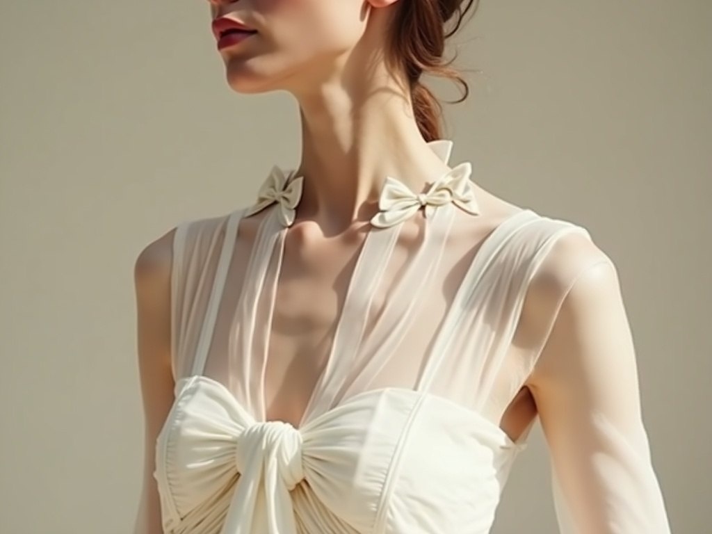 Снежно-белое платье с каркасом внутри: первая модель показа Дебютная коллекция открылась платьем, в котором внутренний каркас задаёт всю архитектуру вещи. Ткань натянута по косой, линия груди оставлена открытой, а тончайшие банты на груди и подоле служат почти ювелирной опорой конструкции. Архитектура кутюра и чуточку магии Такой каркас — уже не просто подклад: он держит всю форму платья, повторяя задумку «New Look», но делая её легче и динамичнее. При малейшей ошибке в лекале платье тут же теряет задуманный объём, поэтому каждая деталь собирается вручную и девочки в цехе отмечают даже минимальные перекосы. В подобных архитектурных решениях ткань оживает только за счёт точной посадки и работы внутренних швов. Каждая примерка — микроскопическая коррекция. Женская одежда бренда BajuV https://t.me/BajuvBrand