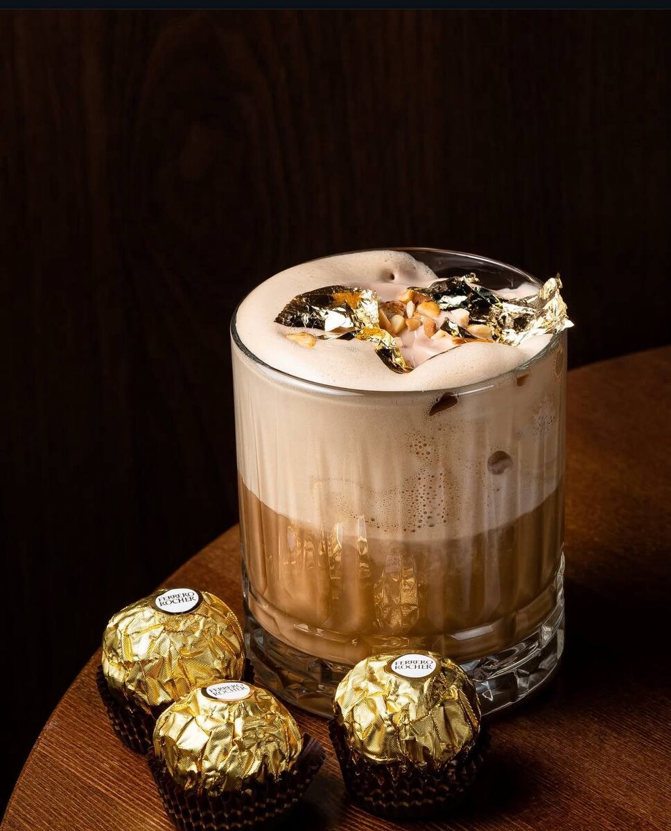 Золотой латте со вкусом ириски у нас уже был, теперь пробуем золотой кофе ferrero rocher в кондитерской Дины Саевой Quidi Ореховый, теплый, с шоколадной нежностью и легендарным вкусом 🤎 📍кондитерская Quidi м.Воробьевы горы/Лужники, Малая Бронная ул., 20с1 / ул. Лужники, 24с47 Отправь другу и спроси: пойдем со мной? 😎 #кофемосква #десерты