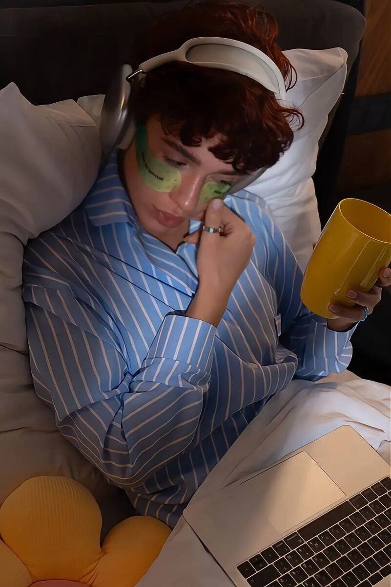 И нужно. Рецепт «После тяжёлых трудовых будней» 🧾🤍 Ингредиенты: — любимая пижама — мягкая кровать и любимый согревающий напиток — интересный сериал — патчи с мемами ➡️Способ применения: лечь. налепить патчи выдохнуть. А у тебя патчи — утренний ритуал или вечерняя терапия?😁🥰
