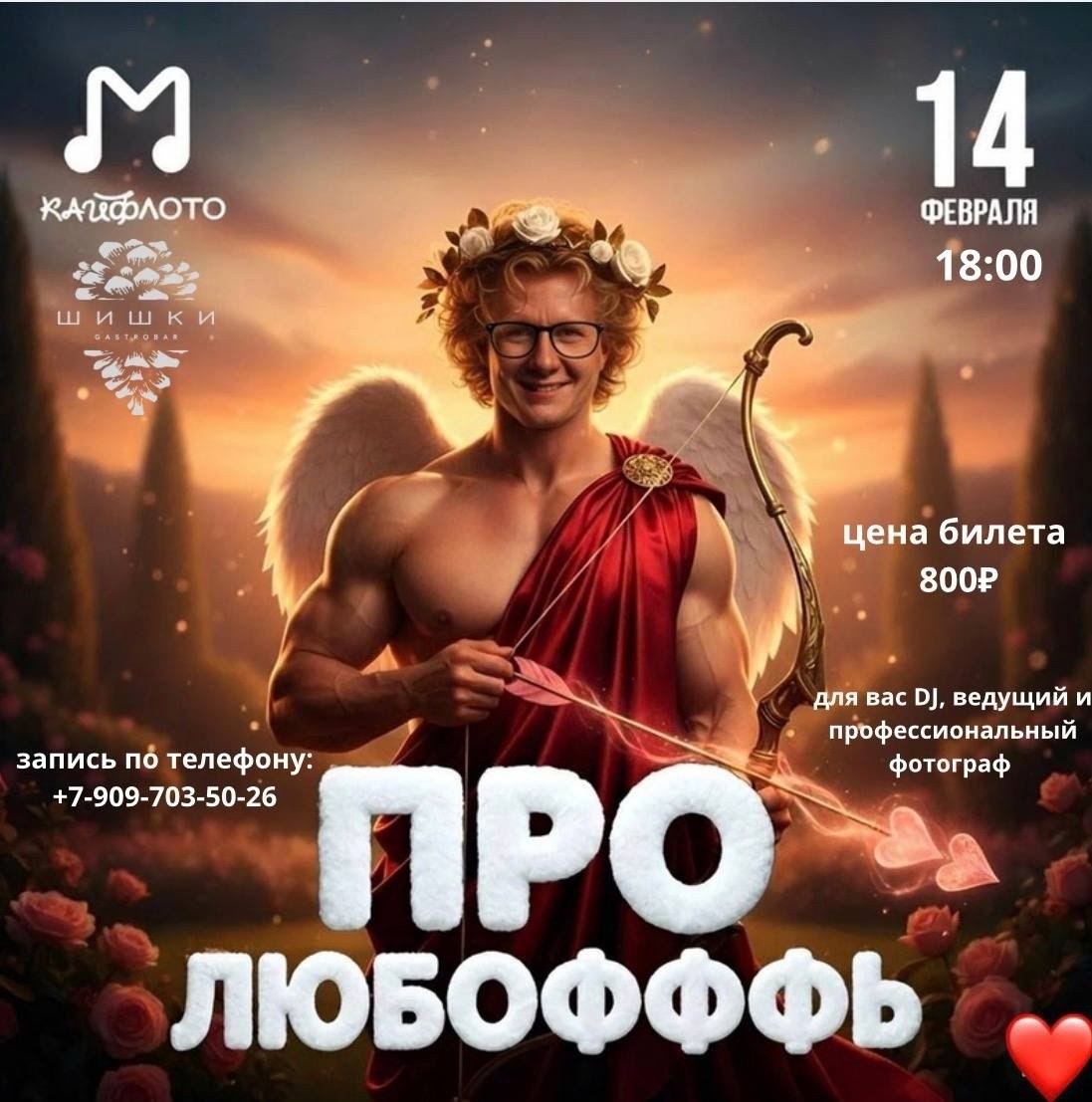 »! 🎱❤ Устали от банальных свиданий? Дарите эмоции! 14 февраля в 18:00 ждём вас на самой азартной и веселой программе — КАЙФЛОТО! ✅ Профессиональный ведущий, который зарядит всех ✅ Диджей и отличный звук ✅ Фотограф, чтобы запечатлеть ваши счастливые моменты ✅ Уютная атмосфера нашего гастробара ✅ Вкусная кухня и бар (предзаказ блюд приветствуется!) Цена билета: всего 800₽ с человека (еда и напитки отдельно). Предварительная запись обязательна❗️ Забронировать место и сделать предзаказ по меню: 📞 8 909 703 50 26 Источник: Открыть