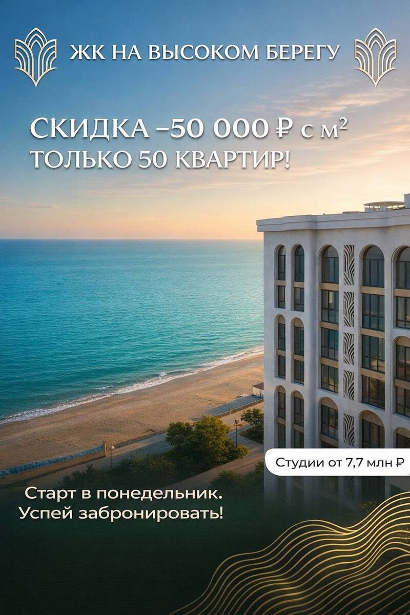 ☄️ ЖК "На Высоком берегу" Акция на 50 квартир, скидка 50.000 рублей за 1 кв.м.📊 ✔️Квартира студия: Стоимость - 9 410 500 руб. Стоимость по акции - 7 788 000 руб. ✔️Однокомнатная квартира: Стоимость - 10 206 000 руб. Стоимость по акции - 8 316 000 руб. ✔️Двухкомнатная квартира: Стоимость - 12 753 000 руб. Стоимость по акции - 10 300 500 руб. 🗺Лучшая локация в Анапе Уточнить подробно про условия, звоните: 📞8-800-234-57-15 Звонок по РФ бесплатный 📲+7(918)477-99-85 ТГ, вотсап📞 ✅ Подписаться | Недвижимость Юга⛰️