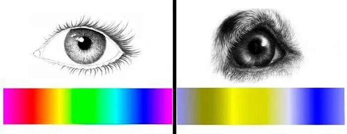 Долгое время считалось, что зрение собак ограничено оттенками серого цвета. Исследования последних десятилетий опровергли это представление. У собак действительно меньше типов колбочек, отвечающих за восприятие цветов, чем у людей, но они способны различать некоторые оттенки. Заблуждение Широко распространено мнение, что собаки видят мир исключительно в черно-белых цветах. Реальность Собачьи глаза содержат два типа светочувствительных клеток-колбочек (мы имеем три), поэтому собаки действительно видят меньший диапазон цветов, чем люди. Тем не менее, они способны воспринимать синий и желтый спектры, а также разные оттенки серого. Красный и зелёный цвета воспринимаются ими примерно одинаково тускло, скорее как вариации коричневого или серого оттенков. Такое ограниченное цветовое восприятие объясняется эволюционной адаптацией. Причины восприятия Эволюционно зрительная система собак была адаптирована больше к условиям низкой освещенности и движущимся объектам, нежели к широкому цветовом