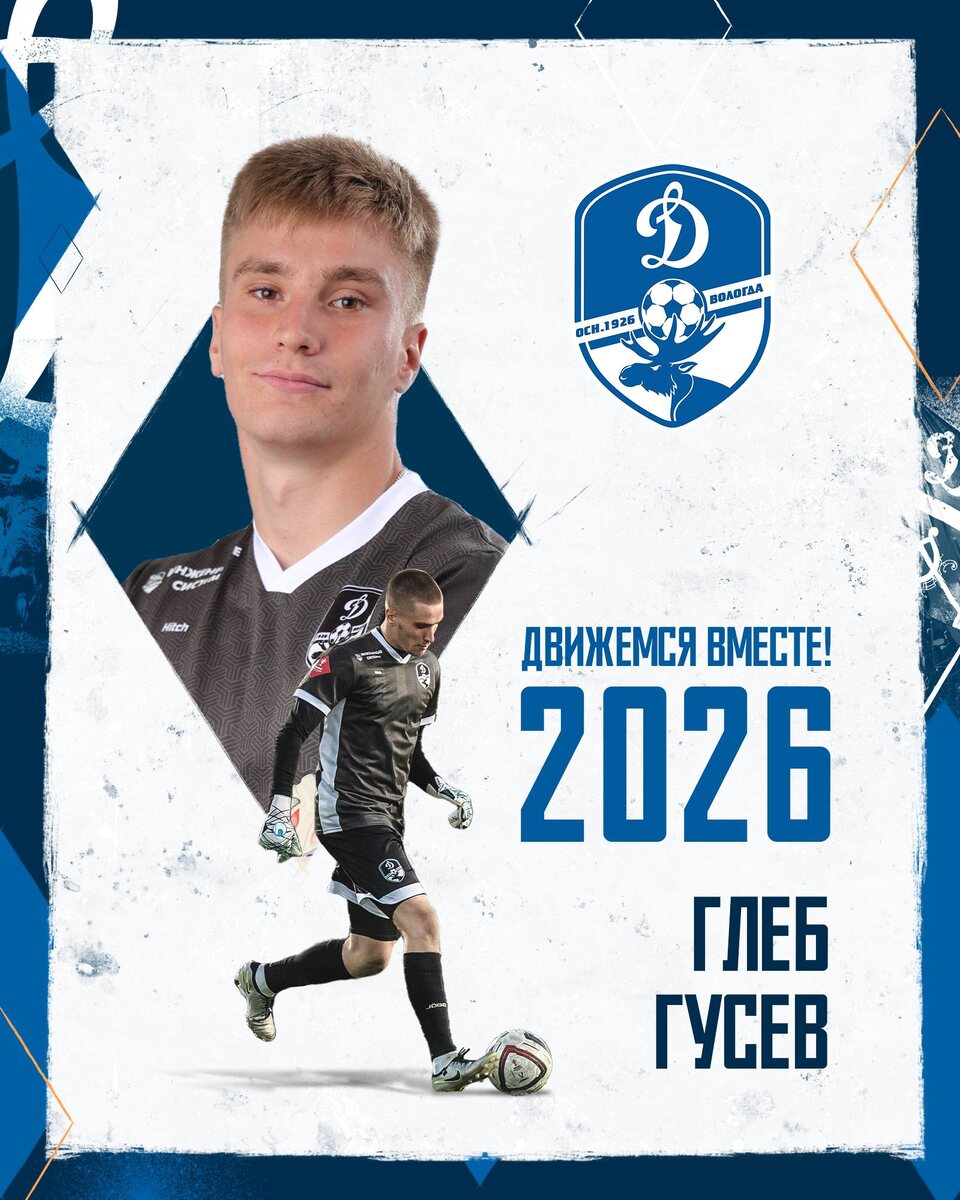 » 💙 Вратарь, выступавший в нашей команде на правах аренды из подмосковных «Химок», подписал полноценный контракт с бело-голубыми до конца 2026 года. В прошедшем сезоне Глеб провёл 8 матчей из которых 2 матча сыграл на ноль. Всего за вологодский клуб в активе вратаря 17 матчей и 6 игр на ноль. Следующий сезон для Гусева станет третьим в футболке «Динамо». Желаем Глебу еще больше надежной игры, сухих матчей и побед с «Динамо»! 🙌🏻 @dynamovologda