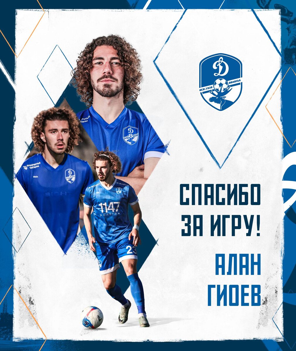 » Футбольный клуб «Динамо» Вологда и Алан Гиоев прекратили сотрудничество в связи с истечением срока действия контракта. Полузащитник пополнил ряды бело-голубых зимой 2025 года. В составе нашей команды футболист провел 26 матчей, забил 1 мяч и отдал 1 голевую передачу. В прошедшем сезоне Гиоев вместе с «Динамо» стал серебряным призером Второй Лиги Б. Футбольный клуб «Динамо» Вологда благодарит Алана за время, проведенное в нашем клубе и профессиональное отношение к делу. Спасибо за работу, Гео! 💙 @dynamovologda