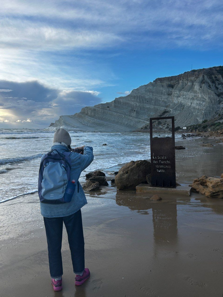 Scala dei Turchi. Та самая белоснежная, словно из сахара, скала рядом с Агридженто. Давно хотела.Очень. Но...не знала как🤷🏻♀️ В сезон там толпа и скалы не видно.Почти так же пока тепло, даже если это октябрь.И это явно не вариант. Еще там очень скользко, и я всегда думала "блин, а как ходить-то по ней я буду".Особенно с учётом толпы, которую надо обходить.Ноги там ломают сотнями в сезон. Местные подтвердили Недавно ввели входные билеты, в стоимость которых намеренно включена страховка.При этом Сицилия не лучшее место, чтобы ломать ногу -можно сутками ждать только попадания в приёмный покой скорой помощи. И видимо,по всем этим причинам выше, скала получилась такой✨️ Людей 0,только 2 полицейских на входе, чтобы нас не пустить, и кучка школьников с севера в море на обратном пути. Немного подвёл закат тучками.Света маловато. Но зато какие фотки характерные. Хотела, конечно, ослепнуть от белизны. Но это нужно прям солнце яркое утром и без шторма,чтобы рядом хотя бы постоять.Ну до