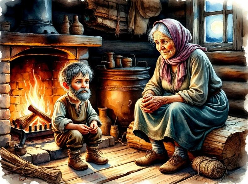 В далёкой деревне, где избы стояли плетнём к плетню, жила‑была старуха Марфа — седая, как первый снег, и мудрая, как вековые дубы за околицей. Держала в своих руках весь дом: знала, когда курица снесёт яйцо, сколько пряжи выйдет из пучка льна, и даже то, какой узор ляжет на скатерть, что ткалась внучкой в дальнем углу горницы.