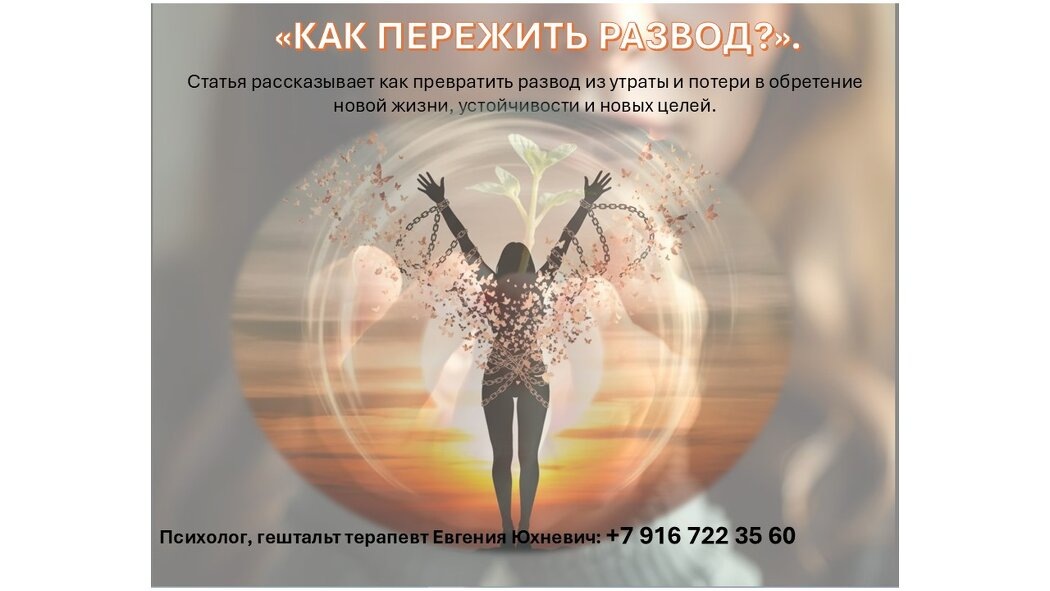 Пережить развод — значит пройти через боль, но важно не застрять в ней, научиться отпускать и открываться новому. С любовью к себе и опорой на понимающее окружение это становится возможным.