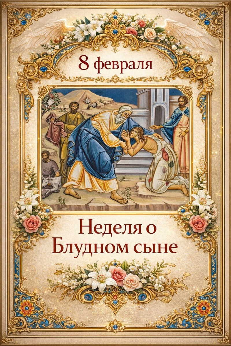 Вторая подготовительная неделя продолжает духовное вхождение в Великий пост и раскрывает одну из центральных тем христианского вероучения, тему покаяния как возвращения человека к Богу. Если Неделя о мытаре и фарисее учила смирению, то теперь Церковь говорит о восстановлении утраченного сыновства. Что означает эта неделя и что она символизирует? Евангельская притча о блудном сыне является образом всей истории отношений Бога и человека. Сын, получивший наследство, добровольно уходит от отца, желая самостоятельной жизни, и постепенно теряет всё. Лишь оказавшись в крайней нищете, он приходит в себя и решается вернуться. Церковь видит в этом образ каждого человека, который, обладая свободой и дарами Божиими, удаляется от Него, предпочитая собственную волю. Однако притча подчёркивает не столько факт падения, сколько возможность возвращения и готовность Отца принять кающегося. Святитель Кирилл Александрийский объясняет, что отец в притче есть образ Бога, Который остаётся неизменным в люб