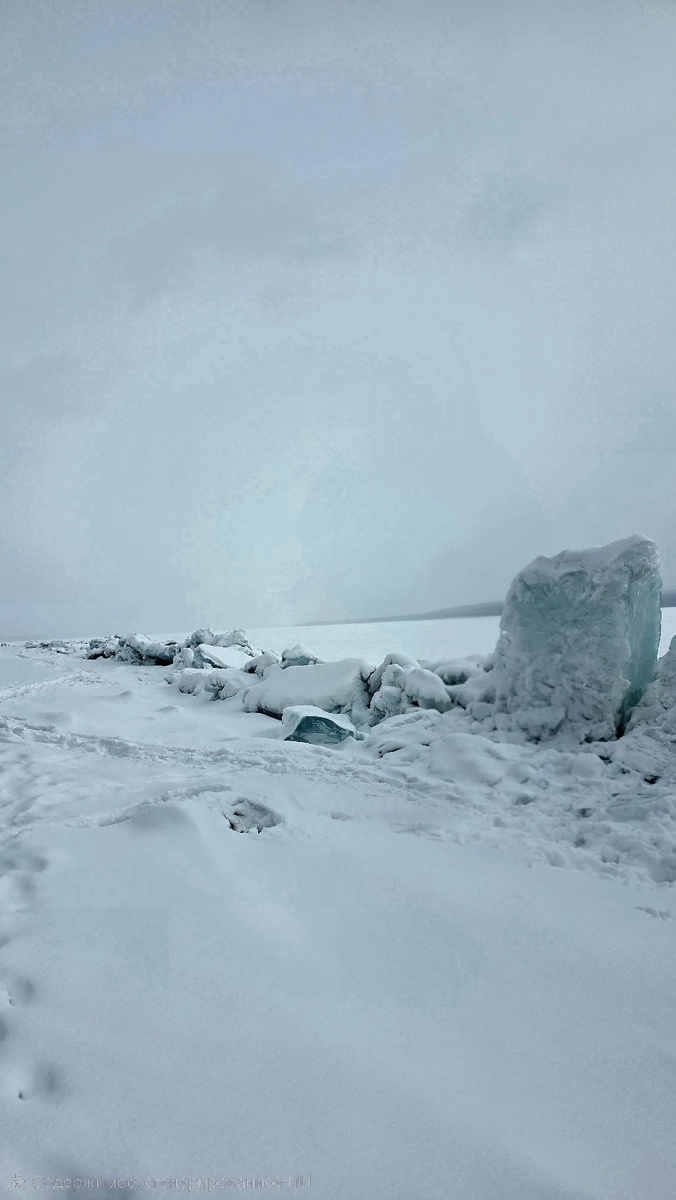 Последствия ледяного толчка - красивые глыбы льда на берегу