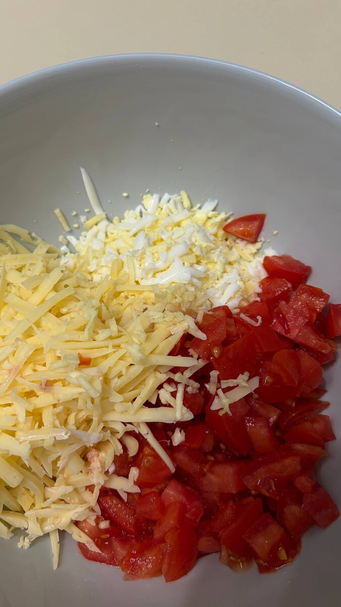 Ингредиенты: Помидоры Сыр Яйца вареные Чеснок Майонез