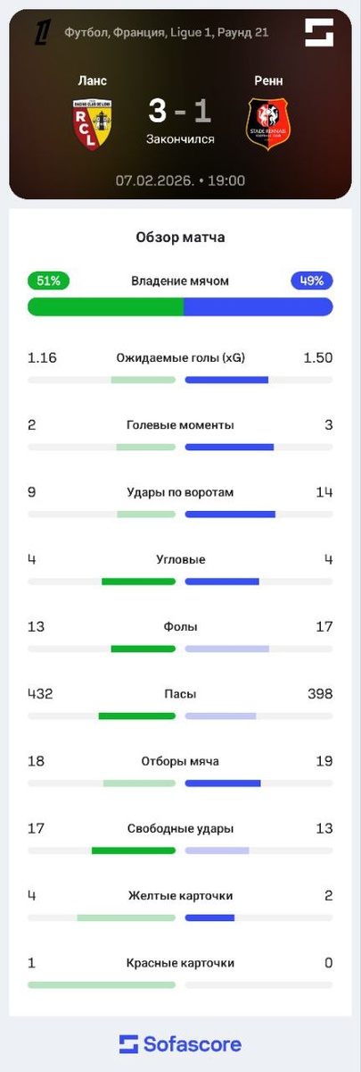 Статистика матча
