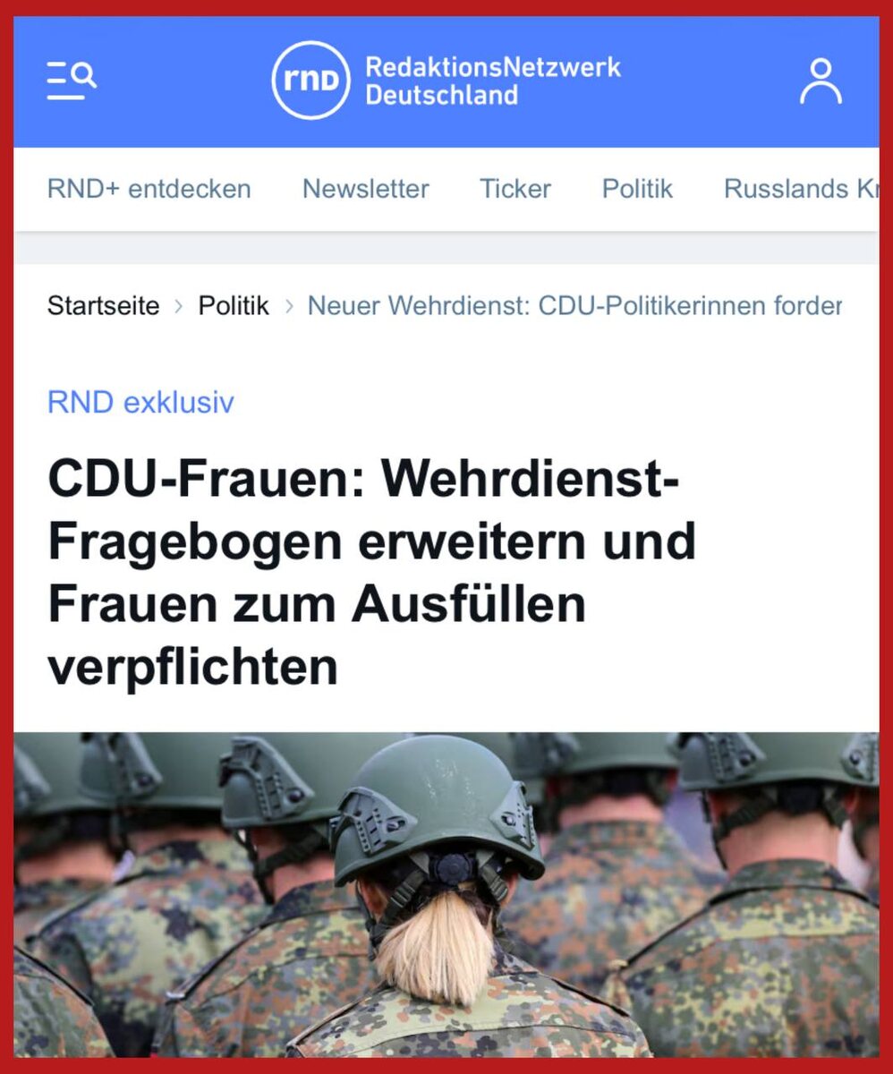 ‼️Женщины тоже должны заполнять анкеты о прохождении службы в бундесвере! Этого требуют в женской организации правящего ХДС