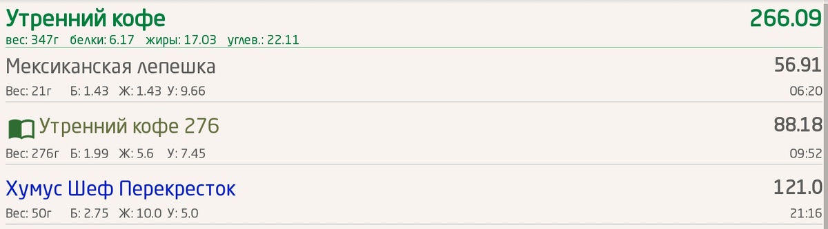 И итог дня по калориям: