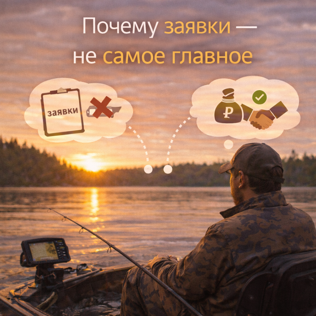 Если клюёт, кажется, что рыбалка удалась. Но это только начало. Проблема в том, что: Можно получать много заявок и: Рыба клюёт, но в садке пусто. В реальной системе ценность создают не заявки, а: Один хороший лид может стоить десяти случайных. Но если смотреть только на количество, это легко упустить. Когда заявки становятся самоцелью: Потому что нет общего понимания: Всё сводится к эмоциям. В выстроенной системе смотрят не на «сколько заявок»,