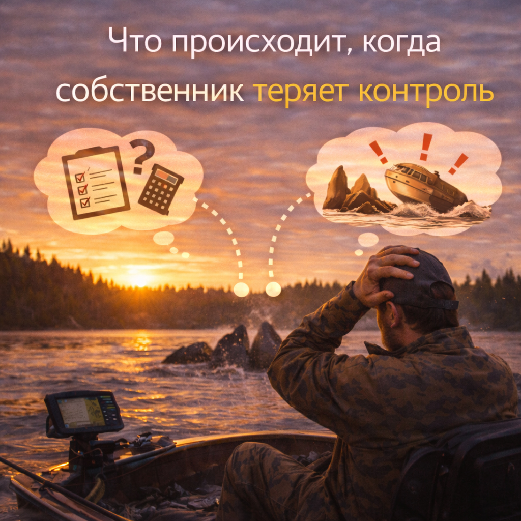 «Вроде всё работает, но я не понимаю, почему». Собственник: Рыбалка идёт, но карта потеряна. Когда контроль уходит: Собственник становится диспетчером: Это даёт ощущение вовлечённости, но на самом деле — это симптом. Без контроля решения начинают приниматься так: Эмоции заменяют аналитику.