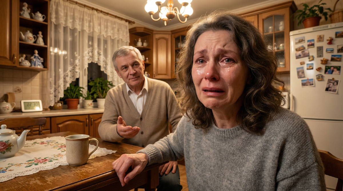 Вечером Марина сидит на кухне. Пьёт кофе из любимой кружки. За окном темно, город засыпает. Виктор храпит в спальне. Алина уехала к себе.