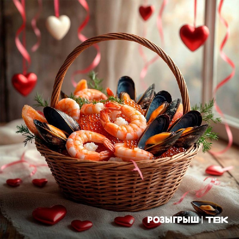 💘 Будет три победителя: Корзина №1 Икра Лазанья (с беконом и песто) Мидии в фарше 0,5 кг Пресерва 0,25 кг Манго Корзина №2 Сибас филе Пресерва из рыбы 0,25 кг Очищенные креветки 0,5 кг Финская уха Десерт «Моти» Корзина №3 Стейк тунца Креветки «Торпедо» 0,5 кг Гребешки фаршированные 0,5 кг Готовое блюдо: крем-суп грибной Порционный чизкейк — 2 шт ➡️ Принять участие можно здесь: https://t.me/tvknew/73160 Итоги подведем 14 февраля 🍀