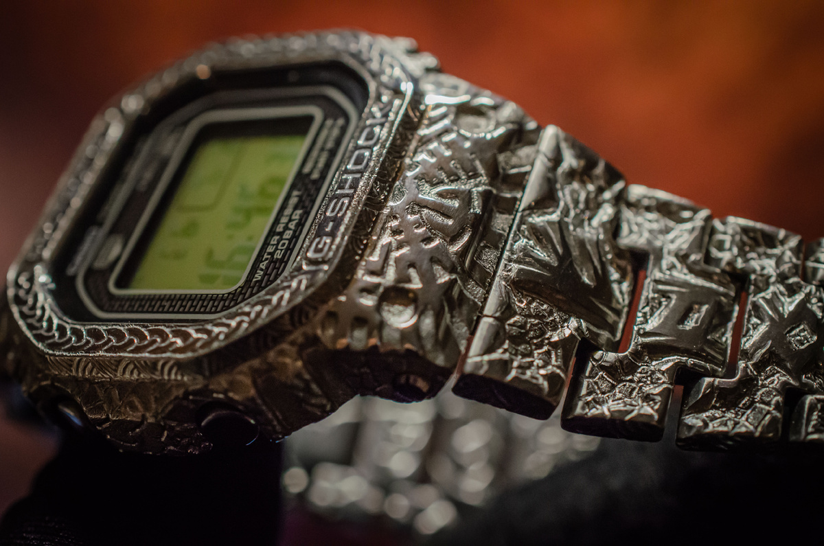 Ручная гравировка мастером из Ярославля Casio G-Shock Ярославль" мастера делают чудеса на редких GMW-B5000 Premium вручную ювелирными инструментами – не лазером с его следами, не травлением с трещинами. Грабштамп, долото, иглы под микроскопом наносят инициалы, даты, узоры на сталь: набросок углем, контуры резцом, тени для объема.