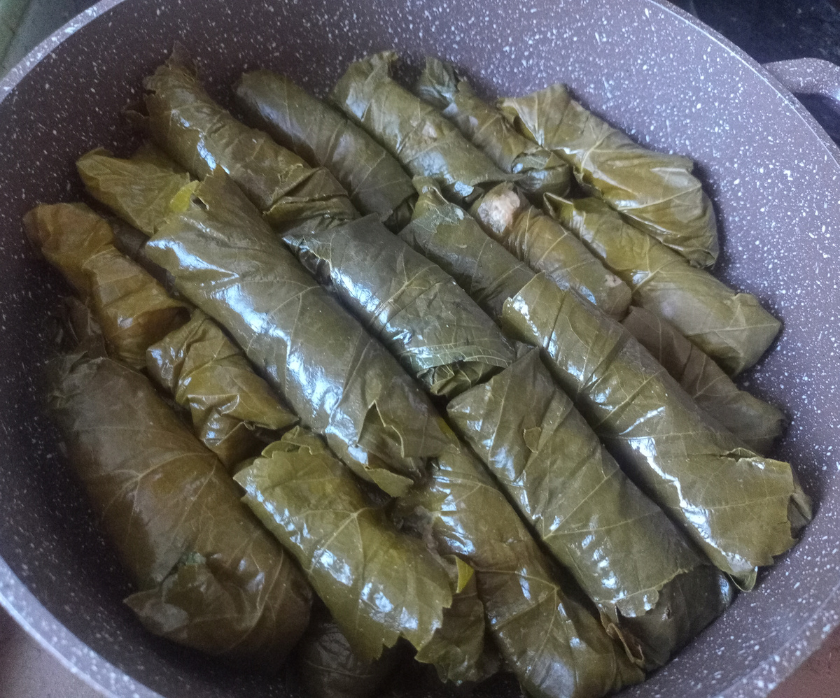 Ингредиенты: Фарш мясной Кабачок Баклажан Репчатый лук Помидор Морковь Петрушка Укроп Соль Перец черный молотый Перец горошком Хмеле-сунели Лавровый лист Чеснок Способ приготовления: Изначально готовим с вами фарш для Долмы. Готовить будем без риса. Но если вы захотите, то можете добавить рис и готовить с ним. Мясо используйте смешанное, из разных видов. Понадобиться примерно 700-800 грамм, в общей сложности до 1 кг мясного фарша. Смесь может быть из того мяса, которое вы захотите и в пропорциях которых вы захотите. Возьмите просторную ёмкость, натрите на тёрке половину хорошего размера морковку. Потом так же на тёрке натираем один кабачок. Возьмите один большой баклажан и отрежьте от него половину. Нарежьте его на кружки, потом разделяем на дольки и нарезаем небольшими кубиками. Берём один помидор и репчатый лук. Разрезаем на круглые доли, потом режем на длинные палочки и нарезаем так же маленькими кубиками. Посолите и поперчите чёрным молотым перцем. Добавляем немного приправы Х