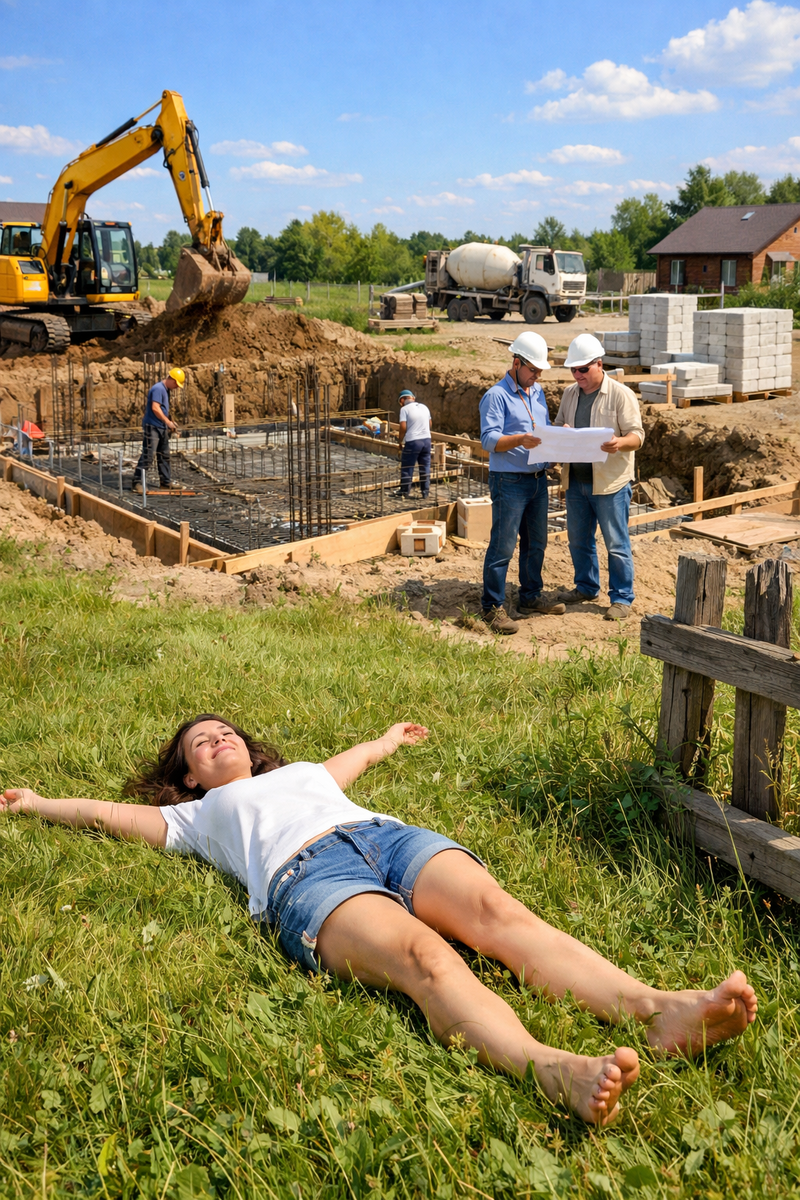 Господи, как же невероятно, до мурашек хорошо было чувствовать под собой эту твёрдую, живую почву, ощущать, как травинки щекочут уши! Строители, проходя мимо с инструментами, посматривали на меня с добродушными, понимающими улыбками, но не комментировали. Ну и пусть смотрят! Лишь бы всё спорилось и шло как по маслу, без срывов и происшествий. Благо, время стояло по-настоящему летнее, тёплое, почти знойное, и можно было надеяться успеть сделать очень многое до первых осенних заморозков.