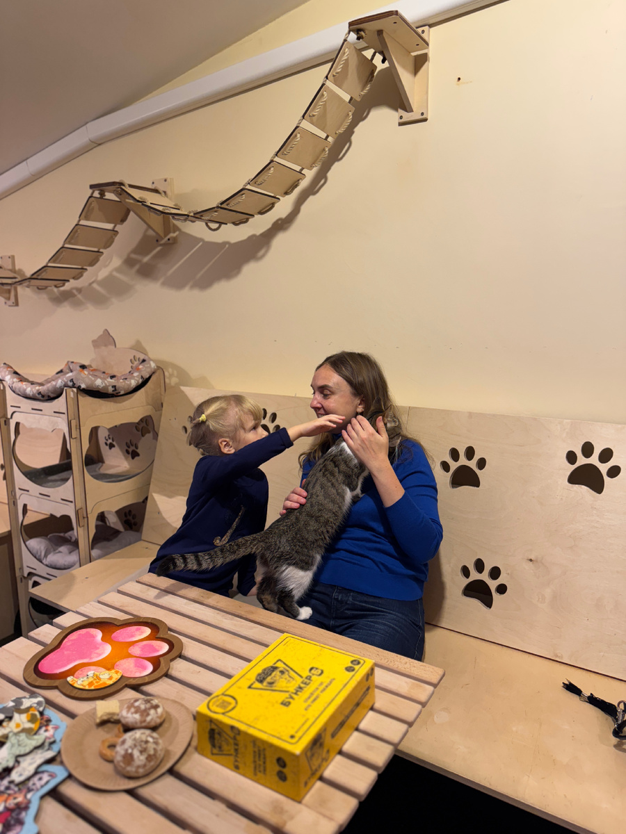 Домашних питомцев у нас нет: сын уже “переболел” этой мечтой, а вот дочка до сих пор грезит о котике) Поэтому идея сходить в котокафе давно жила в нашем списке желаний 🤍