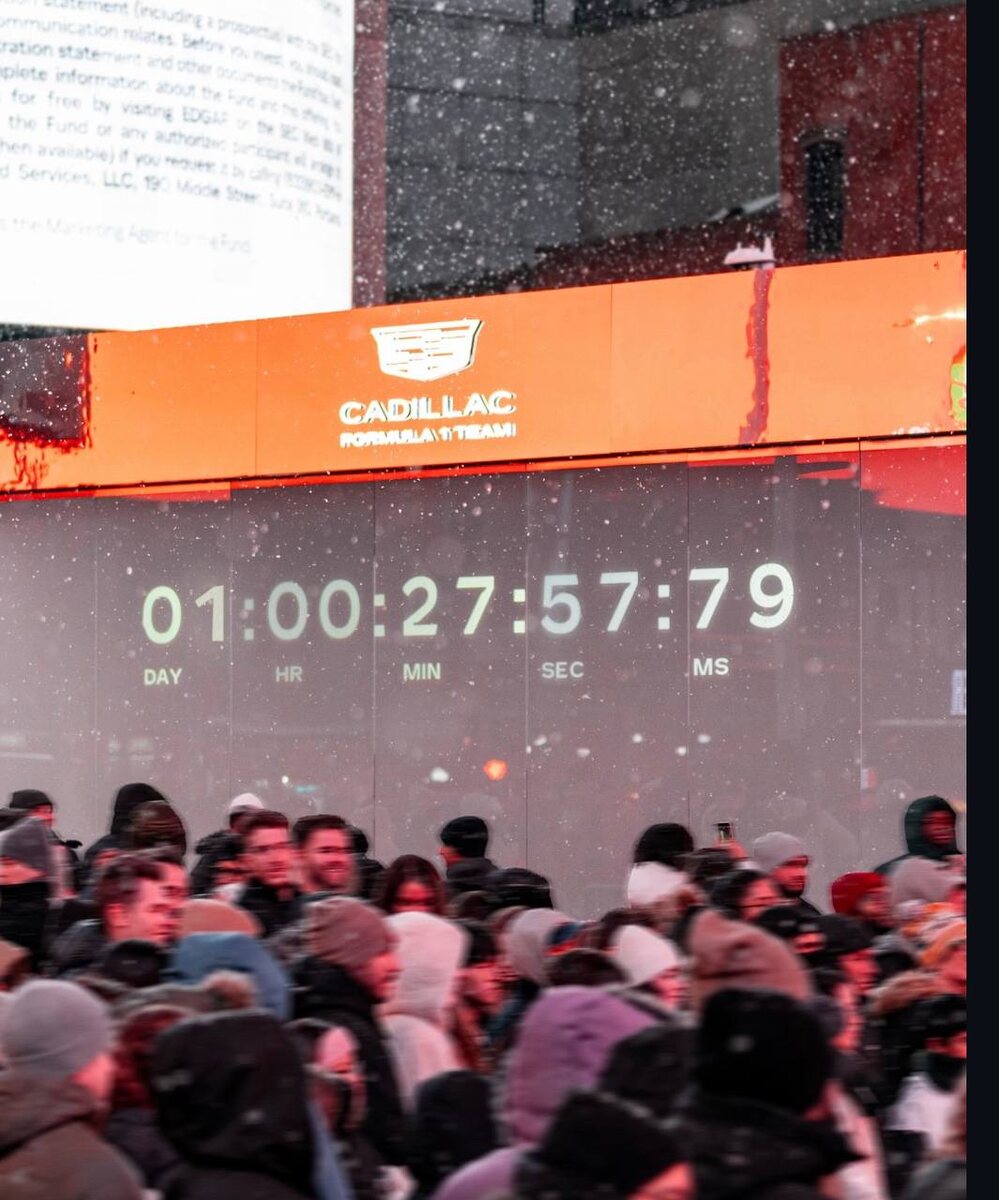Гоночная команда Cadillac готовится представить ливрею своего болида для Формулы-1. Задумка и масштабы презентации – поражают. На Тайм-Сквер в Нью-Йорке установили бокс и таймер с обратным отсчетом. Внутри – заветный болид. Чем меньше времени остается, тем лучше видно машину. Вокруг бокса уже собираются толпы ожидающих. Полностью болид станет виден уже через 12 часов. А официальную рекламу покажут этой ночью во время Супербоула. 🔥 – ух! 💰 – ах! ПРО маркетинг в спорте