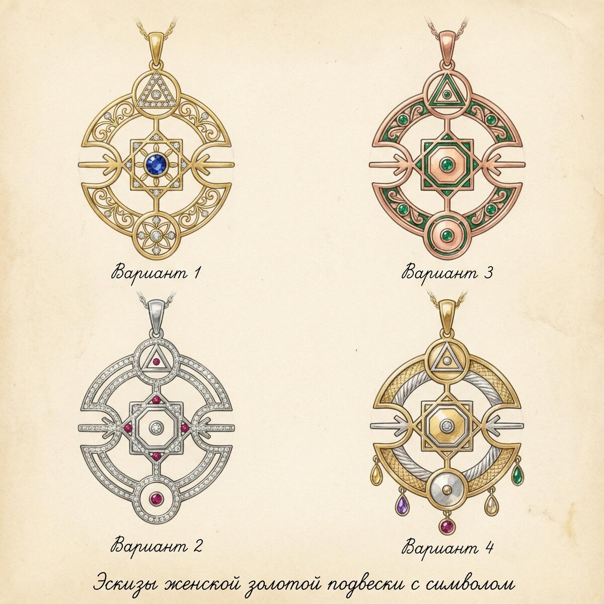 Эскизы женской подвески из золота с фианитами и руной-именем. Только дошло, что можно добавить это в отчет по Руне-Имени