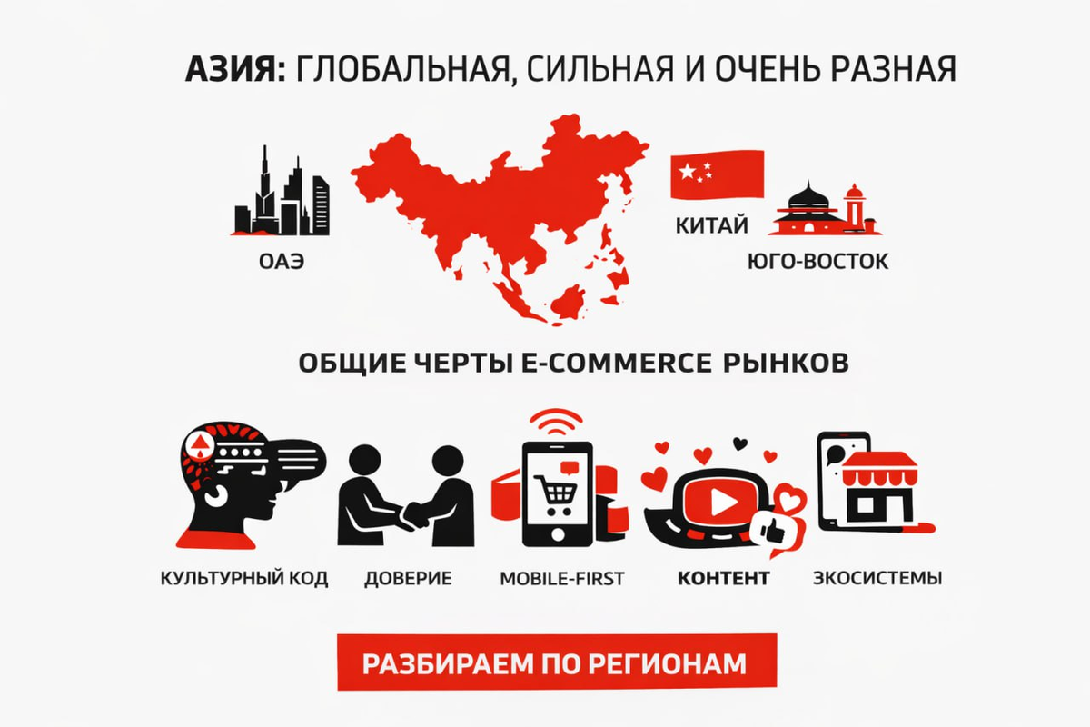 Азия — это не единый e-commerce-ландшафт, а совокупность принципиально непохожих между собой регионов.