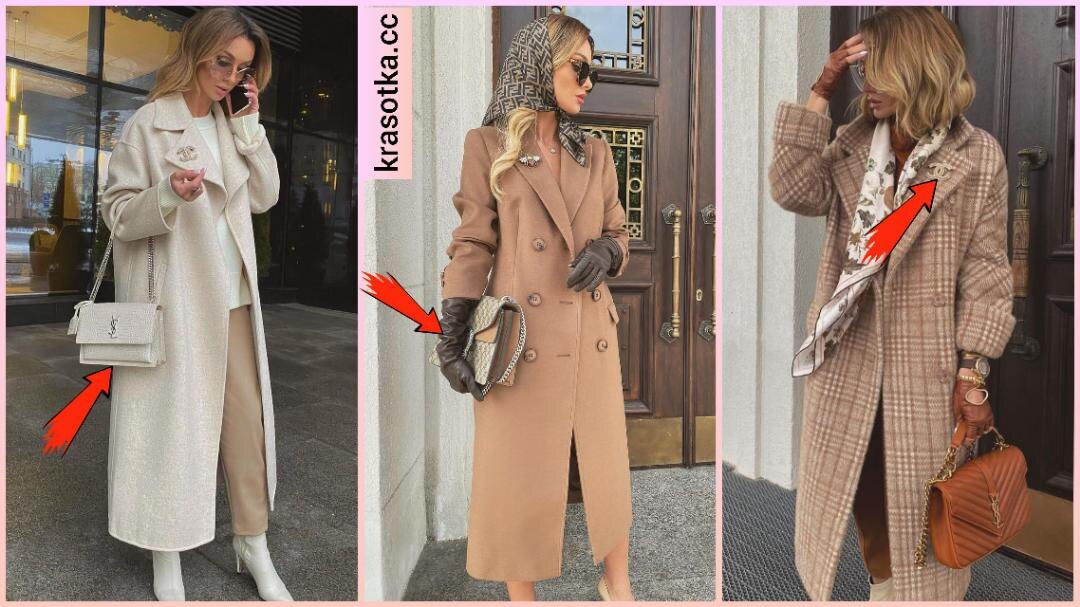 Стильное пальто — ключевой элемент женского гардероба. Чтобы создать идеальный образ, важно подобрать правильные аксессуары: сумки, шляпы, перчатки, броши и палантины. От гармоничного сочетания пальто с этими деталями зависит общий вид женщины. Практически ни одна современная женщина не выйдет из дома без сумки. Этот аксессуар просто необходим для хранения всяких женских мелочей, а также для украшения образа. Фасон пальто определяет модель сумки. Универсальными моделями являются портфель или саквояж. В зависимости от назначения они имеют разные размеры и расцветки. Однако, нужно усвоить одно правило: чем короче пальто, тем объемнее сумка. Модели пальто с укороченными рукавами ¾ отлично смотрятся с длинными перчатками из мягкой кожи. Для классических фасонов пальто вполне уместно приобрести короткие элегантные перчатки из замши, кожи. Современные тенденции уводят дом от создания однотонных комплектов из шапки, шарфа и перчаток. Читайте также: Как и с чем носить пальто с принтом: 20+ ори