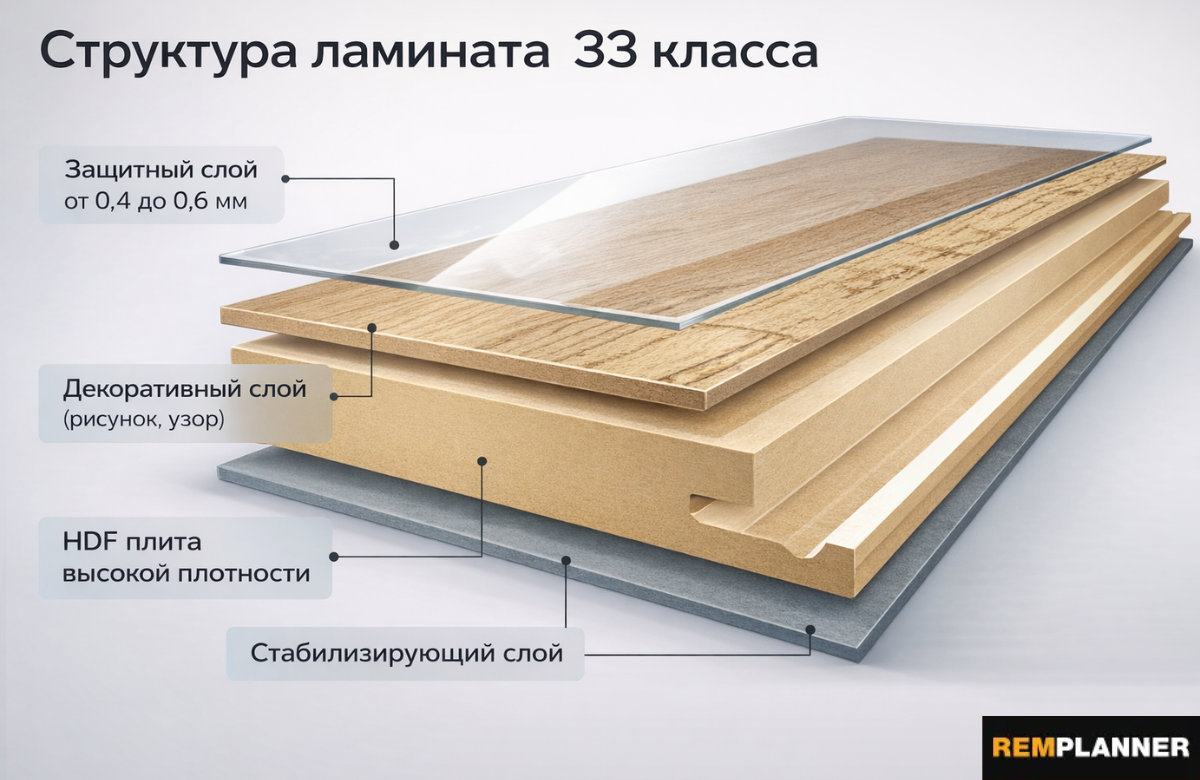 Срок службы напольного покрытия определяется не только его внешним видом или брендом. Ключевые факторы — класс износостойкости, условия эксплуатации и качество основания, на которое укладывается материал. Ошибки на любом из этих этапов сокращают срок службы даже самого дорогого пола. Для классического ламината на древесной основе принцип простой: если покрытие укладывается во всей квартире, включая коридоры и прихожую, оптимальным выбором будет 33 класс. Именно он рассчитан на регулярные нагрузки, активное хождение, песок с обуви и бытовые удары. Более низкие классы (31–32) могут хорошо выглядеть в спальне, но при общей укладке быстро теряют внешний вид — появляются протертости, сколы и расхождение замков. Для SPC-ламината (каменно-полимерного покрытия), уложенного по всей квартире, 34 класс более чем достаточен. Он устойчив к влаге, перепадам температуры и высоким нагрузкам. Иногда покупатели ищут 43 класс, считая его «самым надежным». На практике это избыточное решение: 43 класс озна