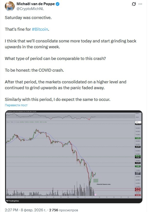 Думаю, сегодня мы ещё немного поконсолидируемся и в течение следующей недели начнём постепенно двигаться вверх. С каким периодом можно сравнить этот обвал? Честно говоря, с ковидным крахом. После него рынки консолидировались на более высоких уровнях и продолжили медленно расти по мере того, как паника сходила на нет. В этот раз, на мой взгляд, нас ждёт похожий сценарий.