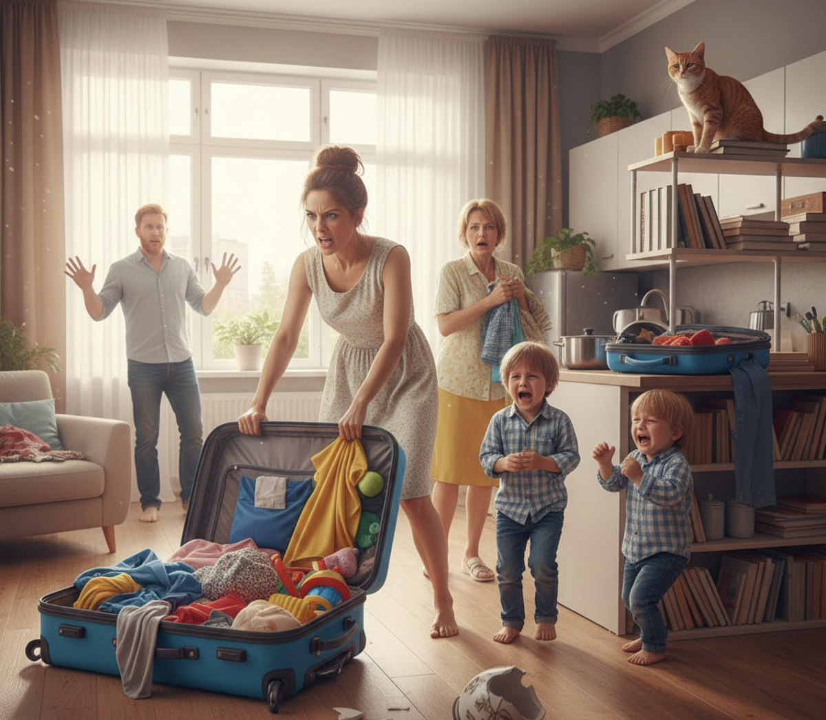 Ночь превратилась в кошмар. Дети не утихали до полуночи, прыгая по кроватям и швыряя игрушки в стены. Свекровь, расположившаяся в гостиной, храпела так, что вибрировали стекла.