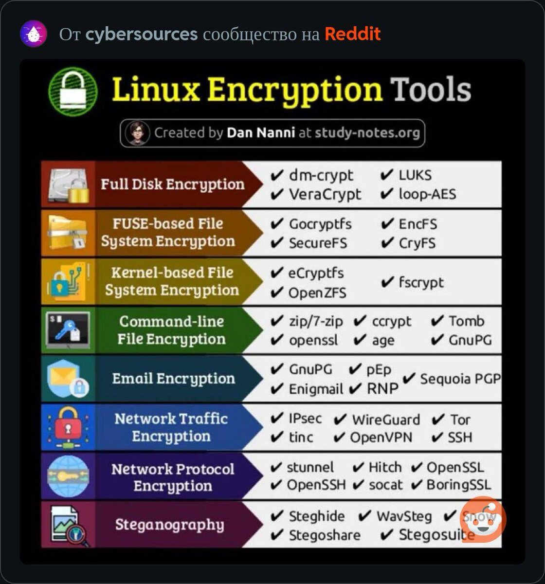 Отвлекаемся от ИИ и приобщаемся к Linux. Инструменты шифрования на картинке. Вы то что- то шифруете ? Секретики :)