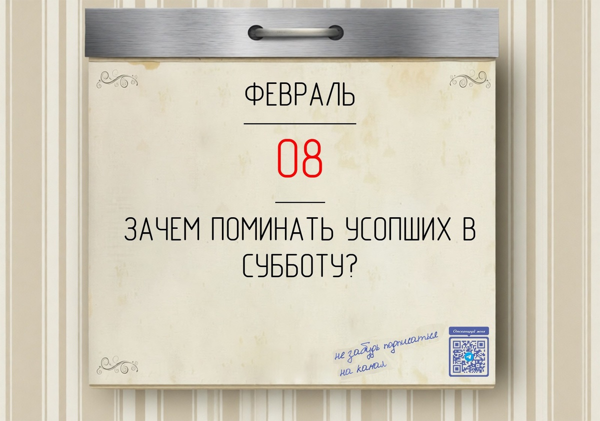 ? ВОПРОС: Почему особое поминовение усопших совершается именно в субботу? ОТВЕТ: Суббота в христианской традиции – день покоя, установленный ещё в Ветхом Завете. В Новом Завете суббота стала символом упокоения во Христе. Поэтому Церковь назначила субботу дём особого поминовения усопших, выражая надежду на их воскресение и вечный покой. Этот обычай имеет и практический смысл: в воскресенье, день Воскресения Христова, служба носит праздничный характер, а в субботу можно сосредоточиться на молитве за умерших. Таким образом, субботнее поминовение соединяет ветхозаветную заповедь о покое с новозаветной надеждой на жизнь вечную. Вывод: поминая усопших в субботу, мы не только чтим их память, но и исповедуем веру в грядущее воскресение мёртвых. Было полезно? Поделитесь, чтобы больше людей узнало о смысле церковного этикета. #ЦерковныеОбряды #Поминовение Подписаться https://t.me/+NbMdPCbn1F40Y2Ni