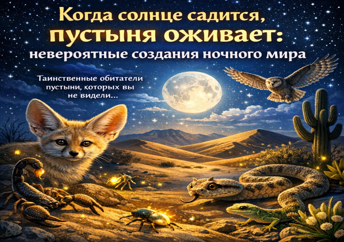 Когда солнце садится, пустыня оживает: невероятные создания ночного мира Вы думаете, что пустыня — это лишь безжизненная земля, раскалённый песок и жара днем? На самом деле, с наступлением ночи она превращается в поле невероятных чудес, где каждое движение и звук рассказывают историю выживания. Луна освещает таинственные тропы, а глаза маленьких ночных жителей сверкают, как звёзды. Если вы никогда не видели, как пустыня оживает ночью, вы просто не представляете её настоящую жизнь. С наступлением темноты жара спадает, и начинается активная жизнь. Многие животные, которые днём прячутся в песчаных норах, ночью становятся активными охотниками и исследователями. Среди них: Пустынные животные научились выживать в экстремальных условиях: Учёные и исследователи пустынь рассказывают: ночные походы открывают мир, который совершенно отличается от дневного. Я лично провёл ночь среди дюн, и каждый звук казался шепотом природы. Маленькие глаза светились в темноте, песок шуршал под лапами скрытных жи