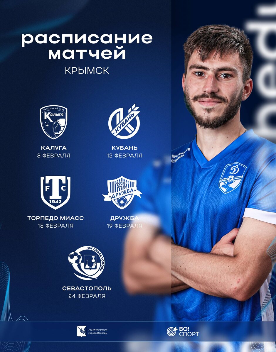 Запланированный матч с «Черноморцем» не состоится. Вместо этого бело-голубые поведут контрольный матч с «Дружбой» из Майкопа. Также на втором тренировочном сборе динамовцы встретятся с «Калугой», краснодарской «Кубанью», «Торпедо» из Миасса и «Севастополем». Подробности о времени и трансляциях контрольных матчей будут предоставлены позже 🔜 @dynamovologda