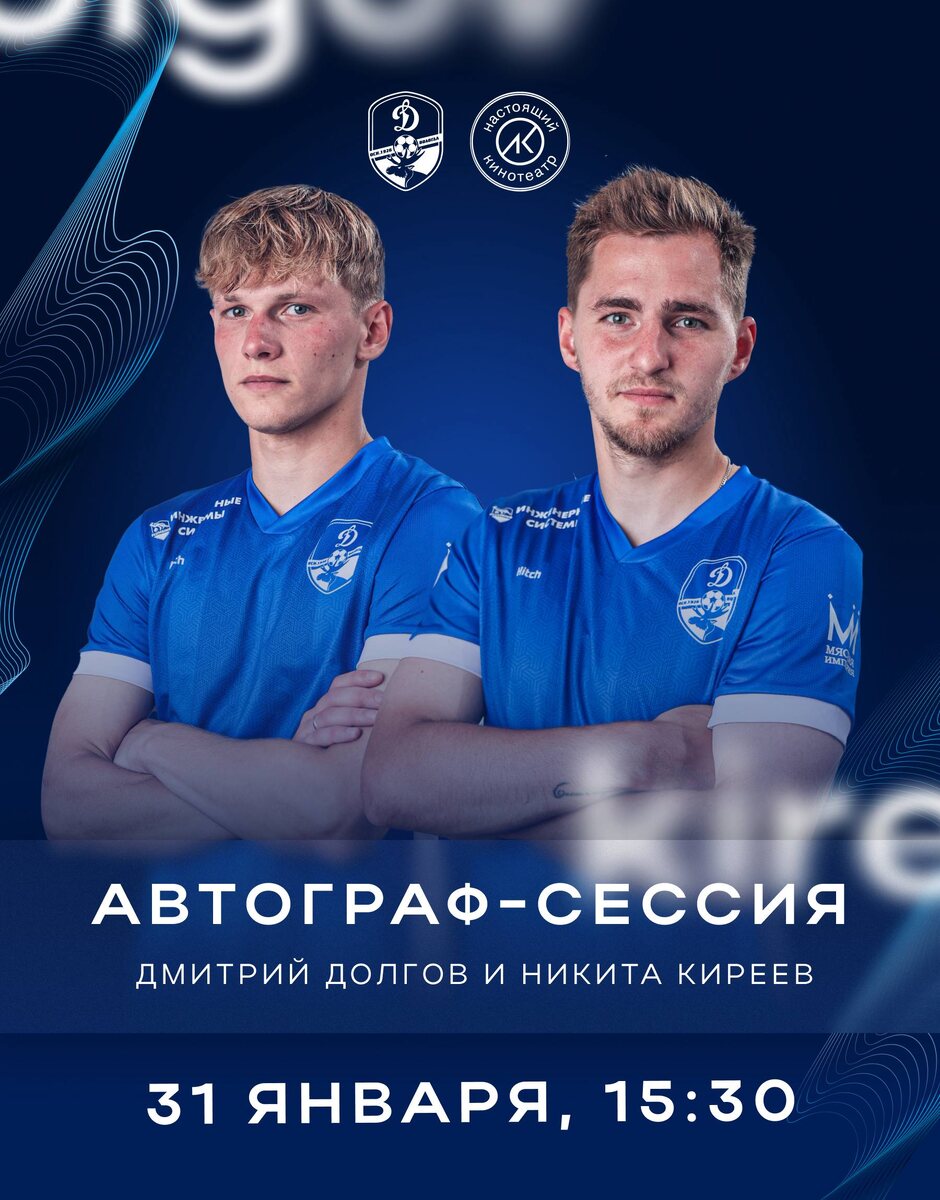 ». Также Дмитрий Долгов и Никита Киреев проведут автограф-сессию за 30 минут для начала сеанса. Приходи общаться, делать памятные фото и проводить вечер вместе с вологодским «Динамо» 💙 @dynamovologda