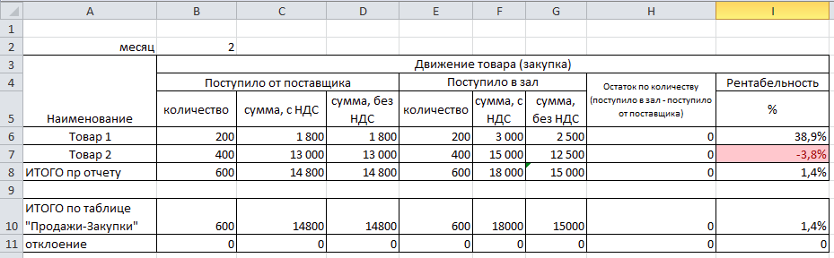 Допустим у нас есть рабочий файл в excel на одном листе которого занесены данные о продажах и покупках в форме таблицы, а на соседних листах созданы проверочные таблицы, для проверки введенных данных. Как использовать GPT для поиска причин ошибок посмотрим на следующих примерах. Проверочная таблица показала, что по одному из товаров выявлена отрицательная рентабельность. Попробуем при помощи GPT найти причину отрицательной рентабельности, написав такой промт. Проверим при помощи фильтров как эта ошибка выглядит в файле. Из таблицы видно, что цена по прейскуранту выше цены поставщика с НДС, но если из нашей цены вычесть НДС, то получиться, цена поставщика будет больше, так как он работает с НДС. Разберем еще один пример. Проверочная таблица показывает, что по артикулу 103 в зале образовался отрицательный остаток. Давайте, выясним причины отрицательных остатков при помощи GPT GPT нашел строки, которые привели к ошибке, далее нужна работа с первичным документами, так как Товар 1 дели