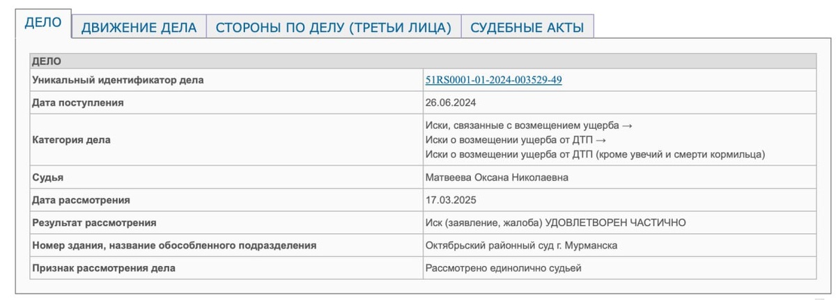Из искового заявления следует, что гражданин обратился в суд с требованием о возмещении ущерба после ДТП, произошедшего из-за выбоины на дороге «Североморск – Североморск-3». Изначально иск был подан к ГОКУ «Мурманскавтодор», позднее к участию в деле в качестве соответчика был привлечён подрядчик по содержанию дороги – ООО «Север Строй». Октябрьский районный суд Мурманска установил, что авария произошла по вине подрядной организации, не обеспечившей надлежащее состояние дорожного покрытия. С «Север Строя» в пользу истца взыскано 493,8 тыс. рублей ущерба за ремонт автомобиля, 15 тыс. рублей расходов на эвакуацию и 101 288 рублей судебных расходов. Кроме того, компания обязана выплатить 40 тыс. рублей эксперту за проведение судебной экспертизы. В удовлетворении исковых требований к ГОКУ «Мурманскавтодор» суд отказал. Информации об обжаловании решения суда (оно датировано маем 2025 года) в картотеке нет. ❄ «Арктический Обозреватель» // Судитесь, господа!