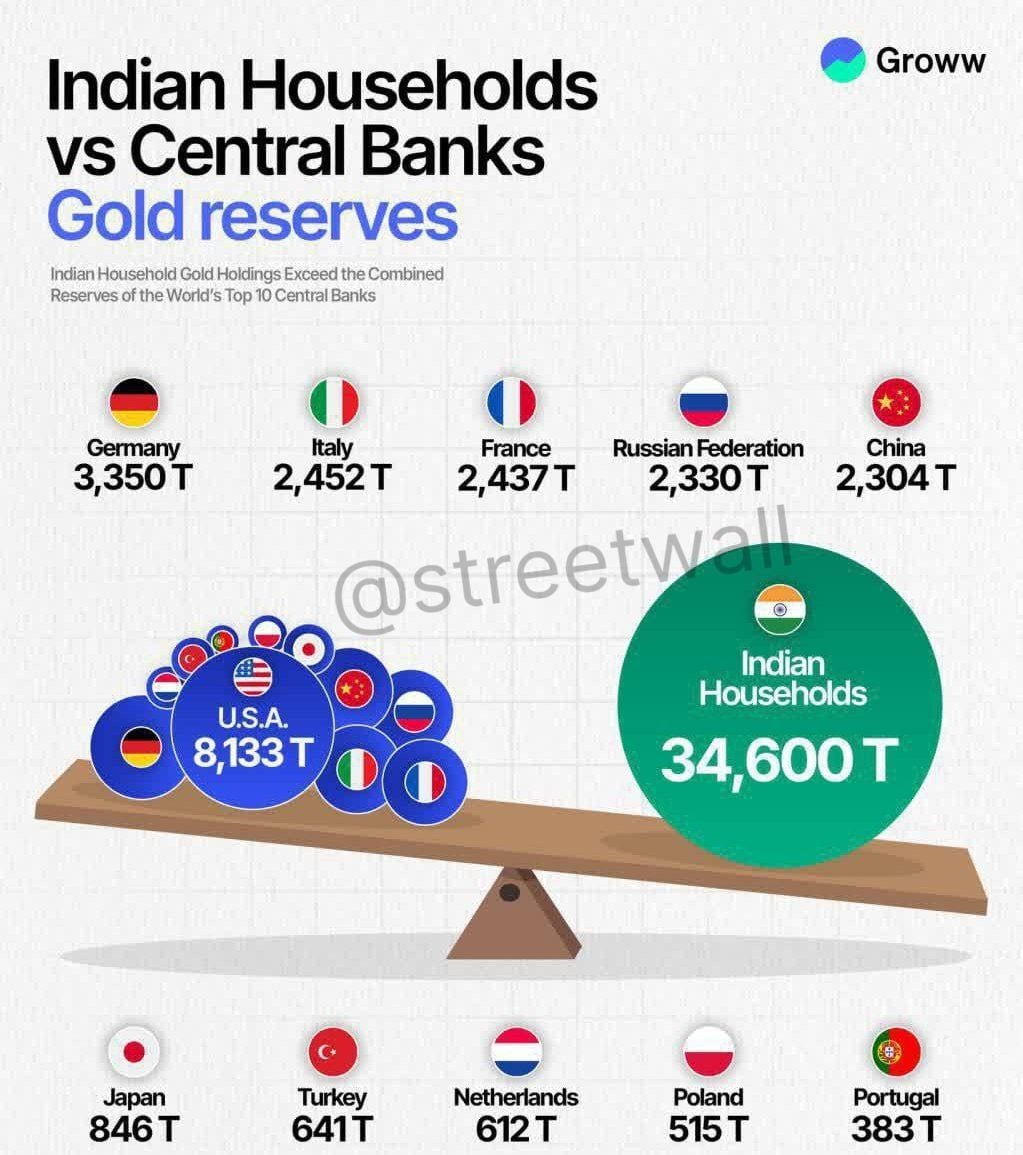 Золотые запасы жителей Индии превосходят все резервы 10 крупнейших мировых ЦБ