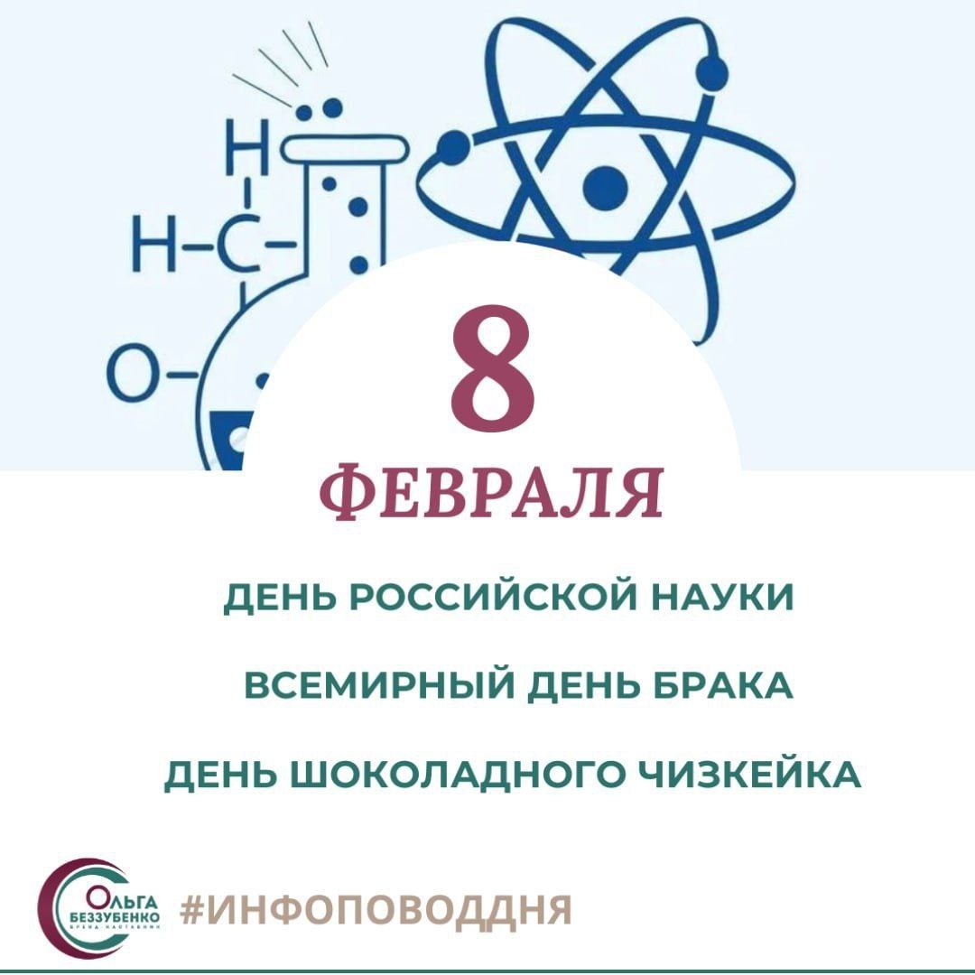 Сегодня - День российской науки, Всемирный день брака и День шоколадного чизкейка Как использовать в медицинском блоге: 💚Рассказать об истории российской медицинской науки или наоборот о новых достижения. Акцент на науку как инструмент улучшения качества жизни пациента 💚Если вы – научный сотрудник, рассказать, почему пошли в науку и поздравить коллег с праздником 💚Здоровый брак – не только про любовь, но и про здоровье партнеров. Акцент на профилактике, заботе о здоровье друг друга 💚Лайф-контент – правила здоровья вашей семьи 💚Шоколадный чизкейк –удовольствие или нагрузка на организм? 💚Зожный аналог шоколадного чизкейка – поделиться рецептом или спросить у подписчиков