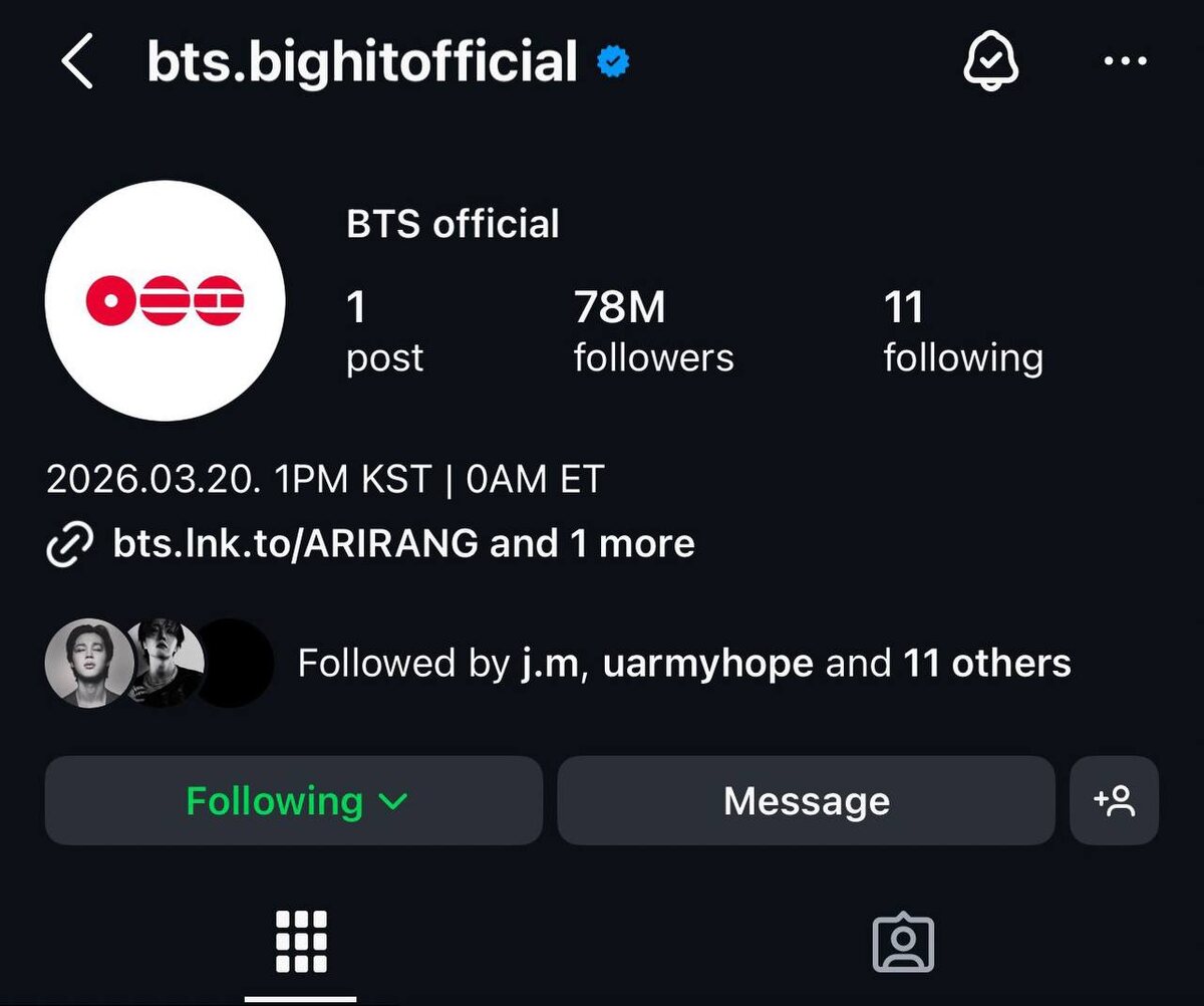 🫐 BTS стали первой и единственной группой, которая превысила отметку 78 миллионов подписчиков в Instagram.
