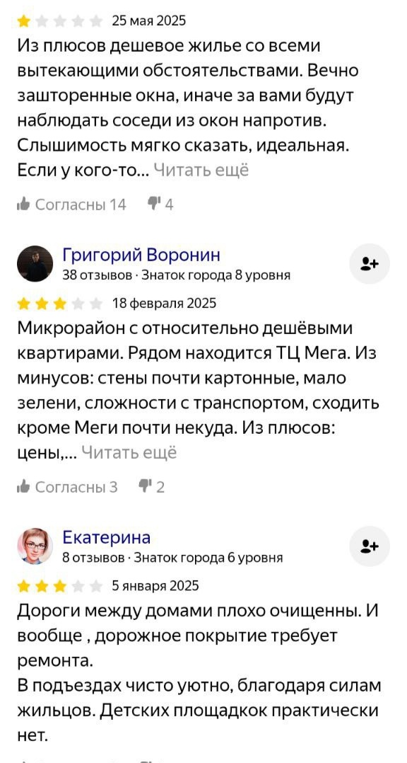 Квартиры сами хорошие, трёхэтажные новые дома, и всё такое, но они все одинаковые!! Из окна видишь такой же дом, в котором сам живёшь, и на улицу выйдешь, кругом такие-же дома.. Наверное там живут люди с крепкой психикой. Многим нравится.