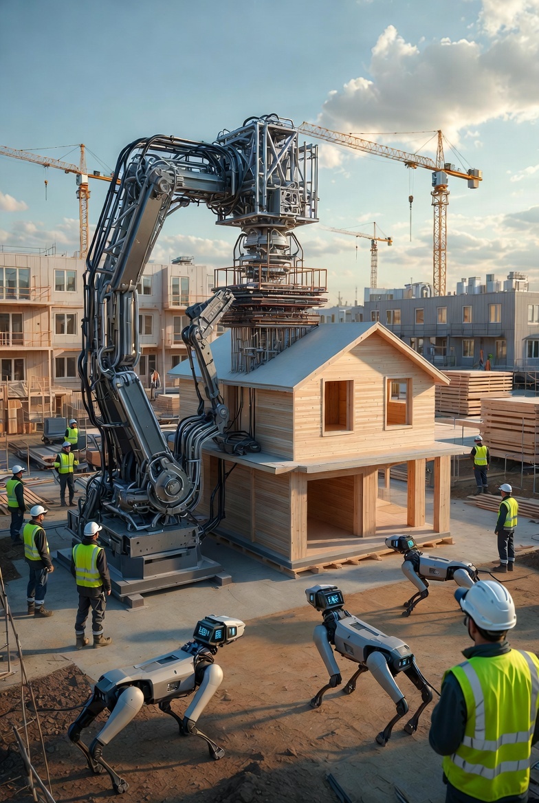 ➡️Модульное домостроение (ГК «МонАрх»). Смена фокуса с полевых работ на фабричную сборку. На объект доставляют готовые блоки с установленными окнами и коммуникациями. Рекордная скорость: монтаж одного этажа укладывается в одну смену.