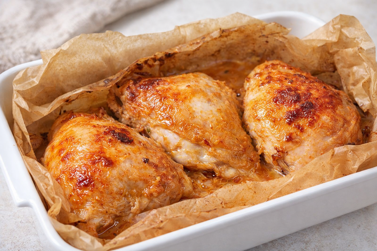 Куриные бёдра запекаются в пергаменте, получаются сочными, ароматными и с румяной корочкой. Готовила из охлаждённых бёдер, не из заморозки. Это важно: вкус и текстура заметно лучше. 1. Подготовка курицы
