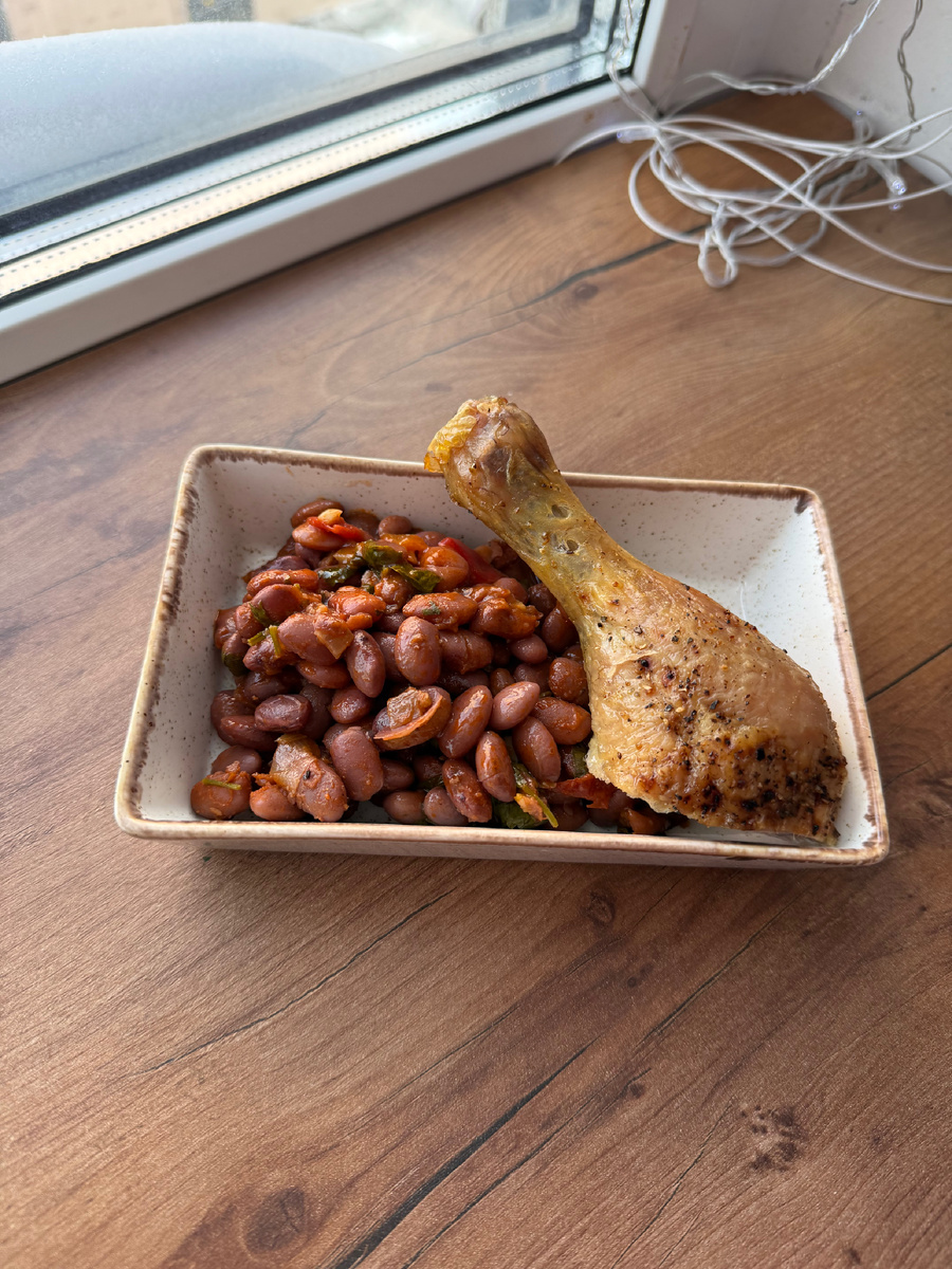 Запекла курочку себе и сделала лобио из накануне замоченной фасольки.