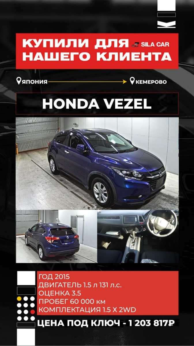 🔥 Никаких скрытых комиссий ❗️️Работаем строго по договору ┏ Реально честная комиссия: ┣ 50 000₽ на авто до 1 млн ₽ ┣ От 1 до 2,5 млн. ₽ - 70.000₽ ┗ От 2,5 млн. ₽ - 100.000₽ САМЫЕ ЧЕСТНЫЕ ЦЕНЫ НА РЫНКЕ ⬇️ Объём двигателя, см3 1500 Цена "на кнопке" ¥1 053 000 р.547 665,30 Комиссия за дорогую покупку ¥15 000 р.7 801,50 Расходы по Японии ¥84 000 р.43 688,40 Фрахт ¥40 000 р.20 804,00 Итого стоимость по инвойсу ¥1 192 000 619 959,20 ₽ Ставка таможенного платежа р.435 157,92 Утилизационный сбор* р.5 200,00 Брокерские услуги, СВХ, погрузо-разгрузочные работы, прохождение лаборатории р.60 000,00 Приёмка и забор автомобиля с СВХ, доставка до лаборатории, доставка до стоянки р.10 000,00 Комиссия р.70 000,00 НДС на комиссию 5% 3 500,00 ₽ Итого во Владивостоке: 1 203 817,12 ₽ 🔴Купил менеджер Марат 📞 +7(904)626-15-28 🔵 @SilaCarMarat 👉Для РАСЧЕТА СТОИМОСТИ АВТО жмите сюда💪 💻Самостоятельный расчет на нашем сайте: silacar.ru Или звоните: 88007002375 ❗️А для тех, кого интересу