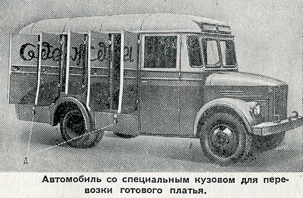 Автомобильная техника В октябре 1953 г Московский Совет депутатов трудящихся обязал завод "Аремкуз" совместно с проектно-конструкторским бюро Управления авторемзаводами Моссовета разработать конструкции и изготовить экспериментальные образцы специализированных автомобилей для перевозки мебели, готового платья, тканей, обуви, белья, головных уборов и других предметов широкого потребления. Исходя из этих требований, заводом "Аремкуз" было разработано три типа деревянных каркасов для специализированных кузовов: автобусные - с нормальными габаритами на шасси ГАЗ-51 и ЗиС-150 и каркас большого габарита на шасси ГАЗ-51. Прототипом кузовов для перевозки готового платья и белья являлся кузов пассажирского автобуса на шасси ГАЗ-51. Несколько изменились лишь габариты: высота кузова увеличена на 140 мм, длина - на 345 мм, ширина - на 100 мм. Помещение шофёра отделялось от грузовой части кузова глухой перегородкой. В кузове для перевозки готового платья с правой стороны имелись пять дверей; левый