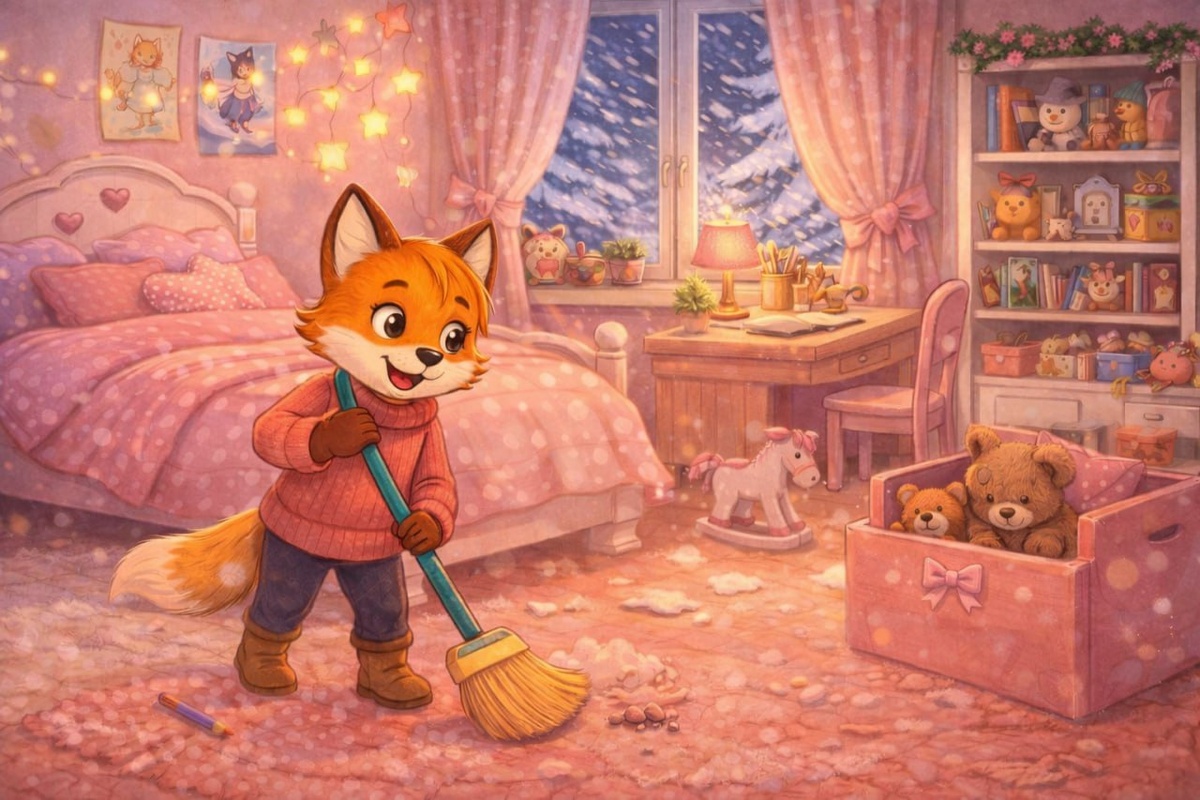 — Сестрёнка, ты убралась в своей комнате? — крикнула Лисичка 🧹