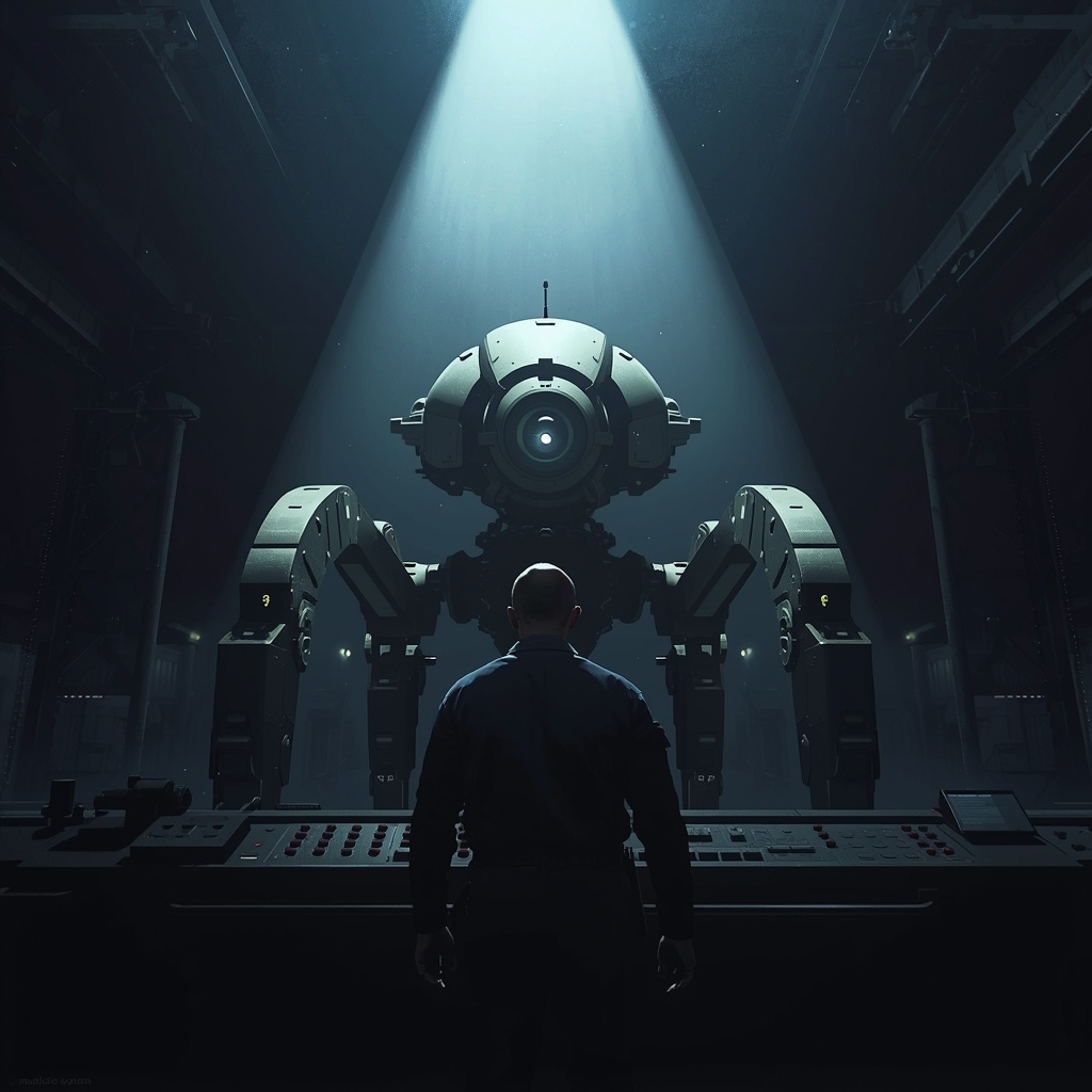 Тишина в ангаре «Гефест-7» под утро была особенной — густой, тяжёлой, словно пропитанной машинным маслом и статикой. Артём Волков, единственный инженер ночной смены, привык к ней. Сейчас его мир сузился до круга света под лампой и шести титановых фигур — платформ «Страж» для обслуживания орбитальных ферм. Они стояли неподвижно, как манекены в темноте.
